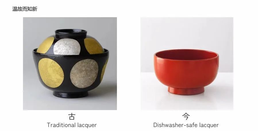 中川政七商店與越前漆器老鋪「漆琳堂」一起開(kāi)發(fā)的漆碗,將傳統(tǒng)漆液,改良為木粉和軟質(zhì)樹(shù)脂為基材的天然本漆,使難以維護(hù)的日式傳統(tǒng)漆器,變成可以隨意扔進(jìn)洗碗機(jī),從使用到清潔都更方便的現(xiàn)代漆碗。