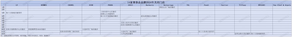 LV:2024年10月關(guān)閉位于沈陽卓展購物中心的門店;原計劃2024年上半年開業(yè)的北京三里屯太古里旗艦店,延遲至2025年開業(yè);去年3月撤除位于海口萬象城的圍擋。