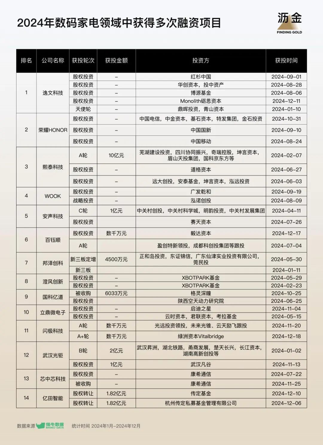 數(shù)碼家電領(lǐng)域中獲得多次融資項目