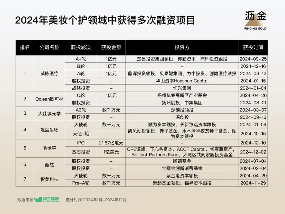 美妝個護領(lǐng)域中獲得多次融資項目