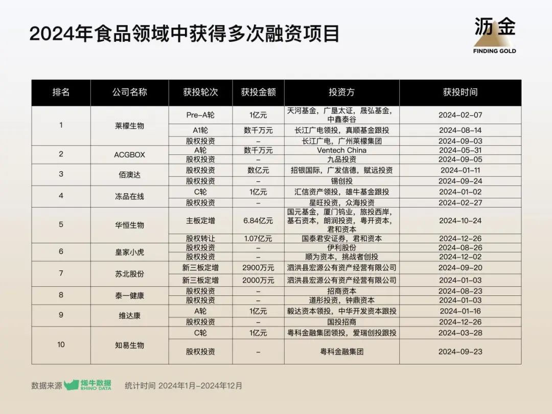 食品領(lǐng)域中獲得多次融資項目