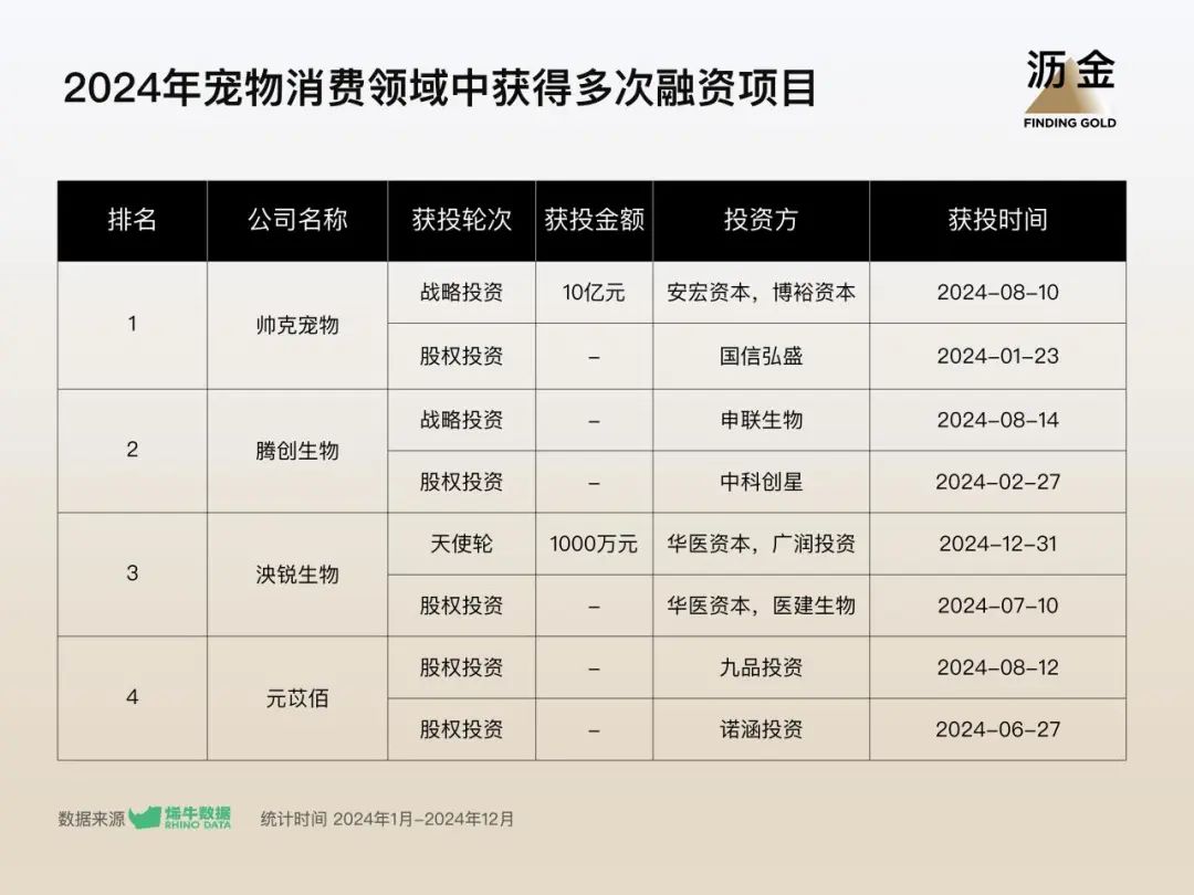 寵物消費領(lǐng)域中獲得多次融資項目