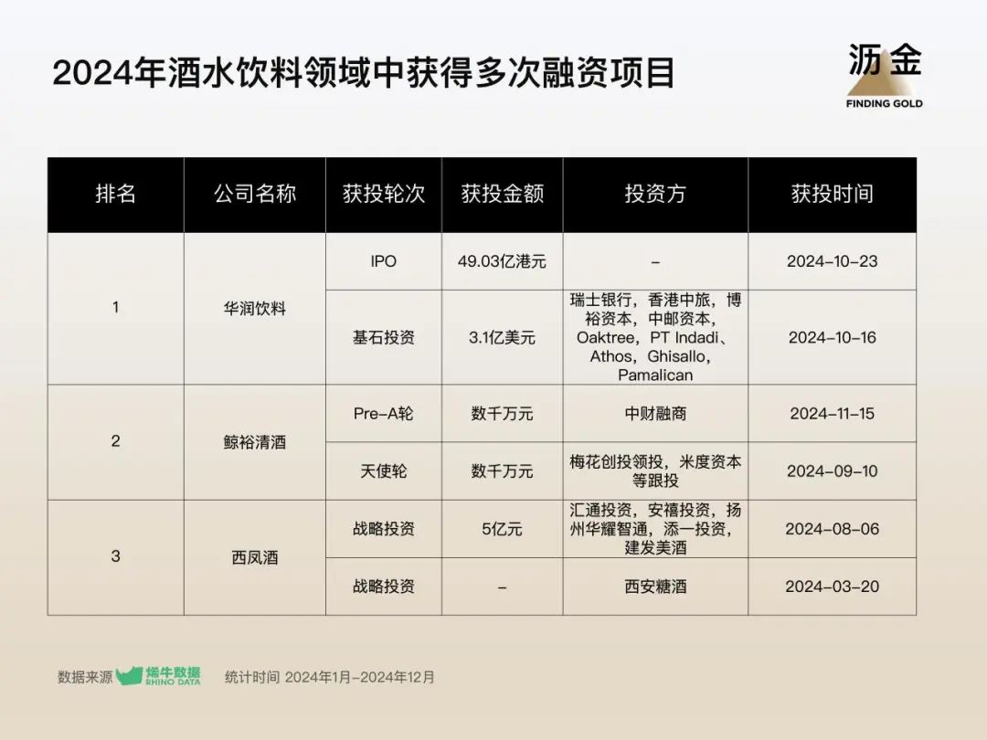 酒水飲料領(lǐng)域中獲得多次融資項目