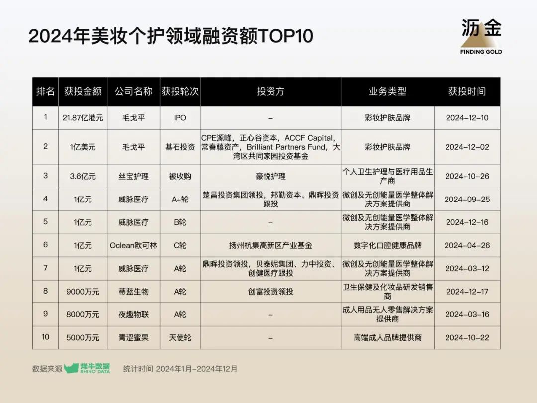 美妝個護領(lǐng)域融資額TOP10