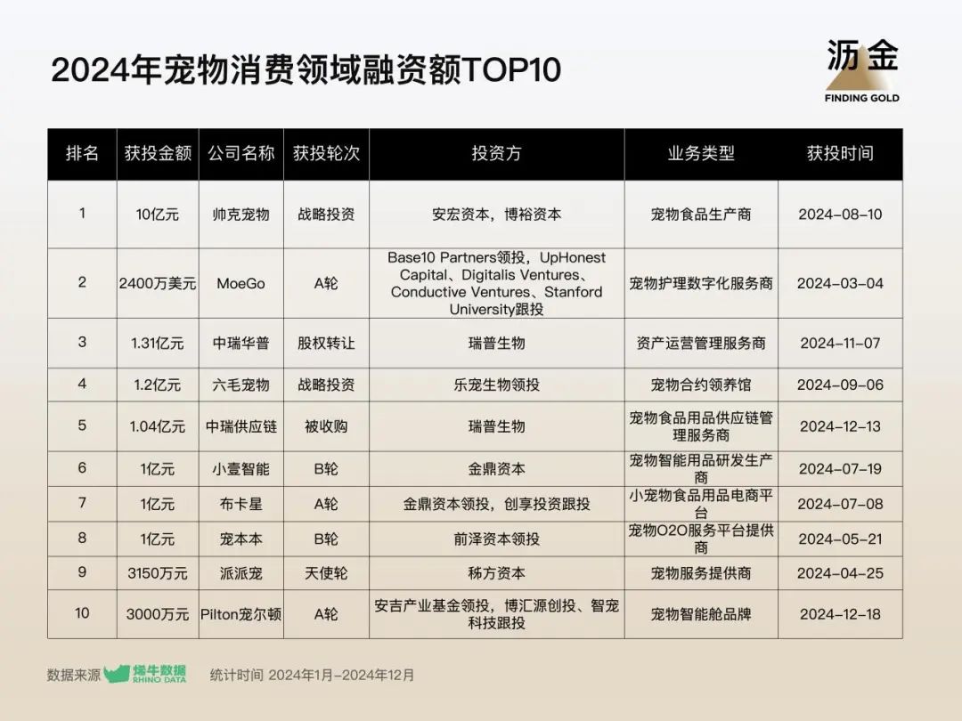 寵物消費領(lǐng)域融資額TOP10