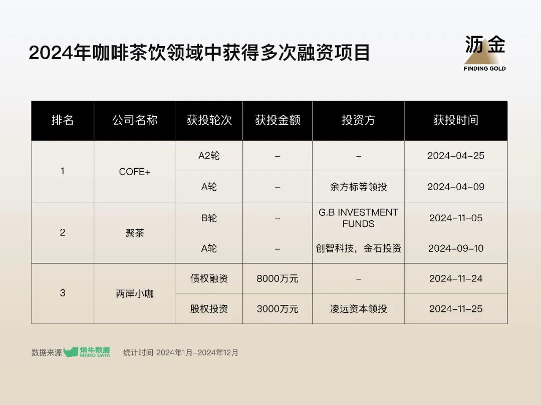 咖啡茶飲領(lǐng)域中獲得多次融資項目