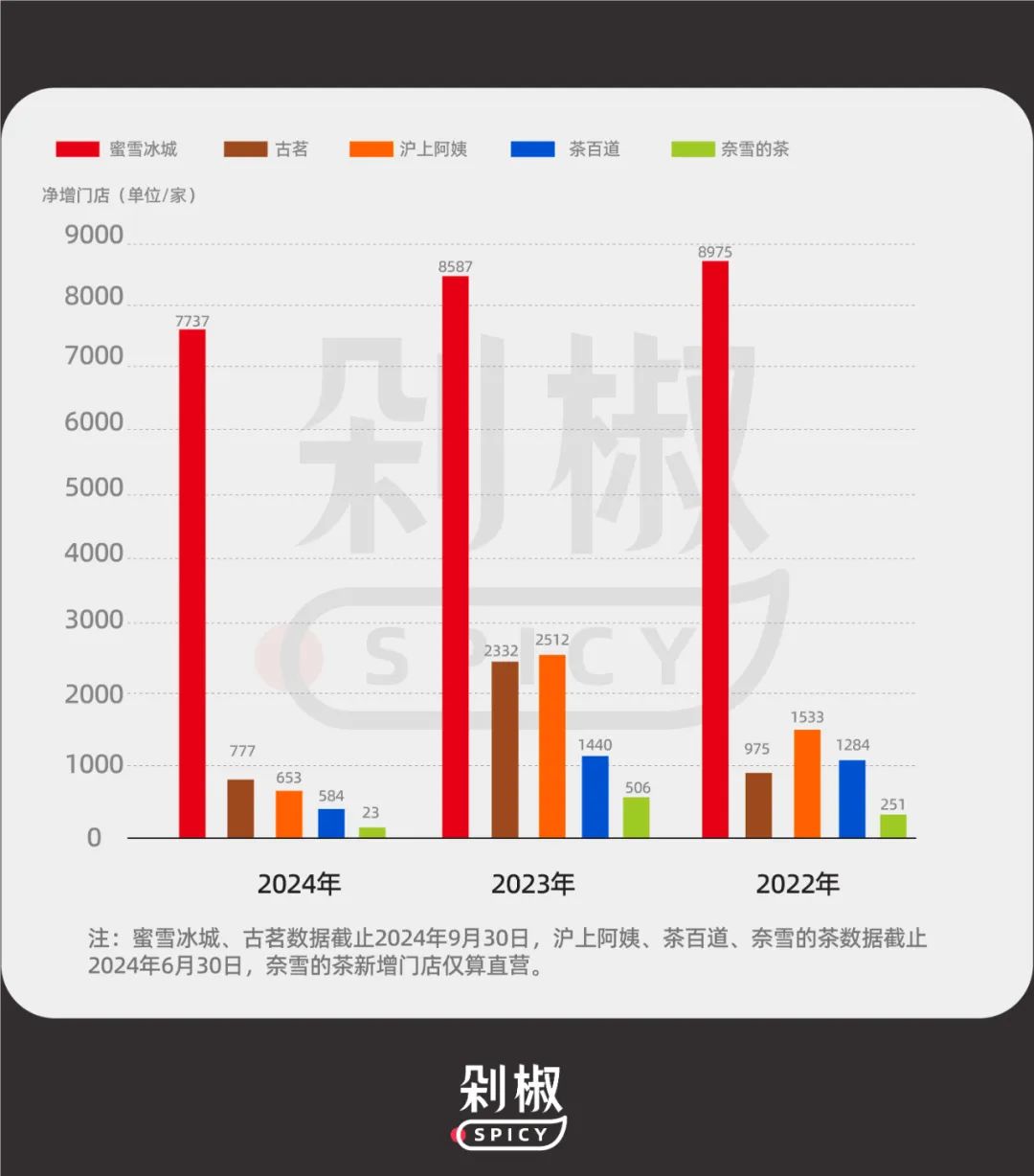 如今,各大品牌跑馬圈地下,蜜雪冰城等頭部品牌點(diǎn)位鋪滿、加盟也漸漸放緩,或許正如一位業(yè)內(nèi)人士告訴剁椒的那樣,“茶飲行業(yè)已經(jīng)沒(méi)有市場(chǎng)增量了”。