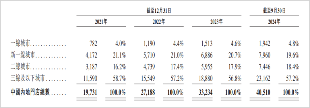 中國內(nèi)地市場門店數(shù)及其占比,來源:招股書