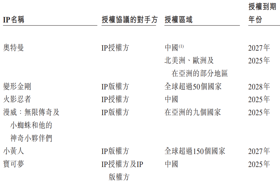 目前,公司旗下絕大部分銷售來自于授權(quán)IP。其中,奧特曼系列2023年和2024年上半年的收入,就占到了公司總收入的63.5%和57.4%。