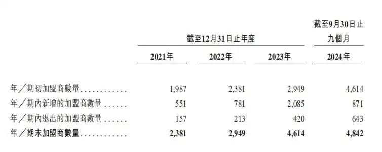 招股書顯示,截至2024年9月30日,老鄉(xiāng)雞擁有1404家門店,包括949家直營店和455家加盟店,相比2023年同期,老鄉(xiāng)雞加盟店增長了222.7%;直營店從2022年的1007家降至949家。