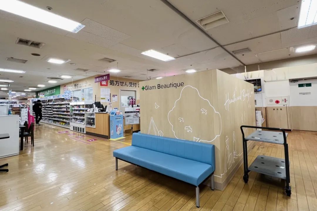 盡管整個(gè)項(xiàng)目的購(gòu)物模式仍以百貨為主,但除了零售品牌外,面向生活方式上的不同需求,永旺葛西G.G Mall還引入了老年向的理發(fā)店、服裝修理店、老年保險(xiǎn)咨詢店、身體理療店,以及配有身體檢測(cè)的藥房和診所,讓生活的方方面面需求,都可以在這里得到滿足。