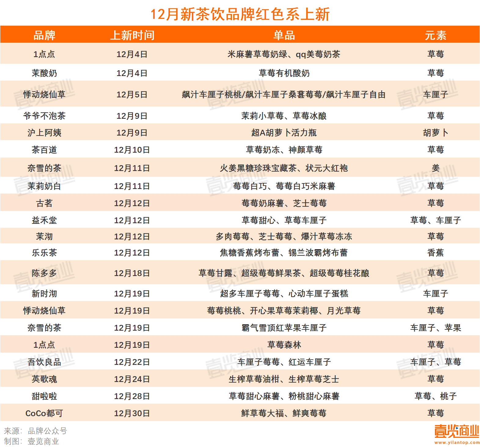 12月,新茶飲行業(yè)呈現(xiàn)出了一股“紅色潮”。