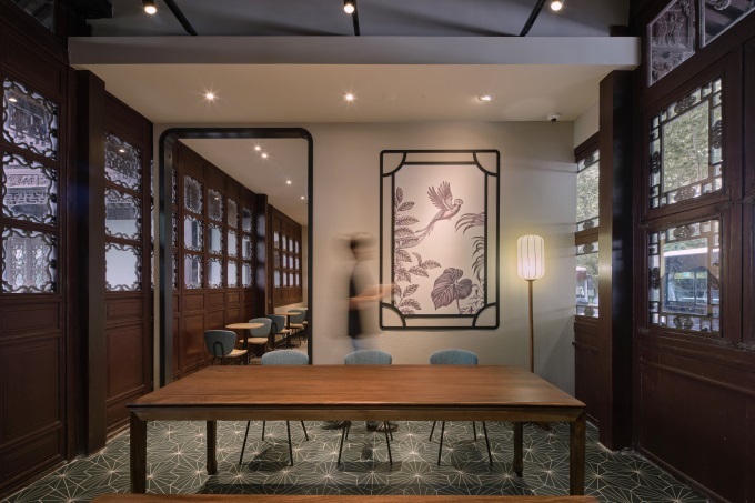 此外,門店特別選用了中式宮燈造型的落地?zé)簟⒎旅髑寮揖咴O(shè)計的卡座、寓意接天蓮葉無窮碧的綠色六邊形花磚地面……每一處細(xì)節(jié)都透露出對傳統(tǒng)文化的致敬與傳承。
