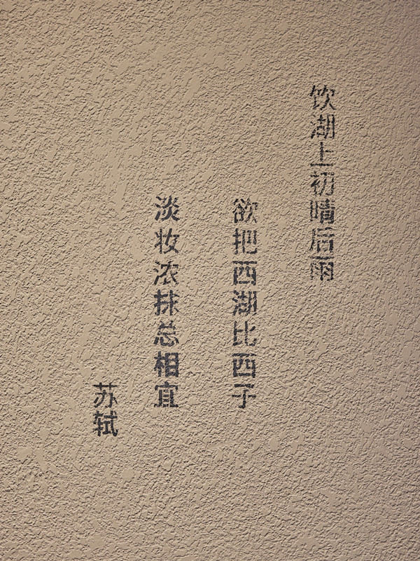 此外,空間墻面的留白之處,精心挑選了描繪西湖的詩句,并以拓印文字的形式呈現(xiàn),帶著西泠印社獨有的古風(fēng)古韻,訴說著杭州文人墨客的才情與逸趣,為空間注入了深厚的文化底蘊。