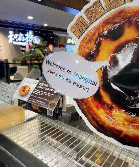 羊肉串、西瓜外,韓國人還迷上了蛋撻,上海新世界城的莉蓮蛋撻店門口,韓國游客們正大排長隊(duì)。從12月以來,差不多每天都有上千人韓國人來買蛋撻,全店80%的客人都是韓國人,整體客流到了之前的兩倍。為了更好地服務(wù)韓國客人,店門口還貼上了韓文歡迎語。