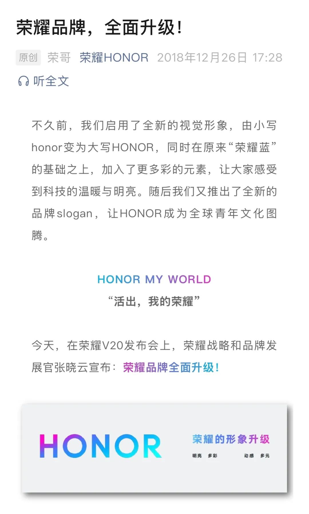 榮耀品牌升級(jí)公告,圖源:榮耀官方微信公眾號(hào)
