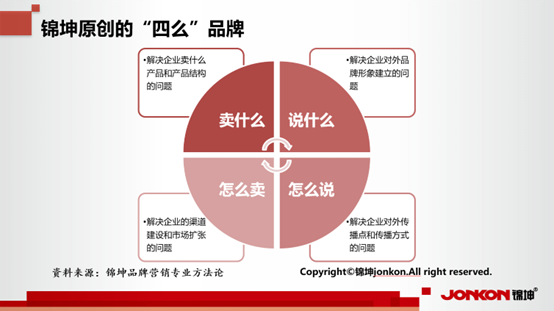 根據(jù)錦坤沉淀了多年的方法論的指導(dǎo),品牌頂層設(shè)計(jì)首先必須要回答的是“賣什么、說什么、怎么說、怎么賣”的問題。
