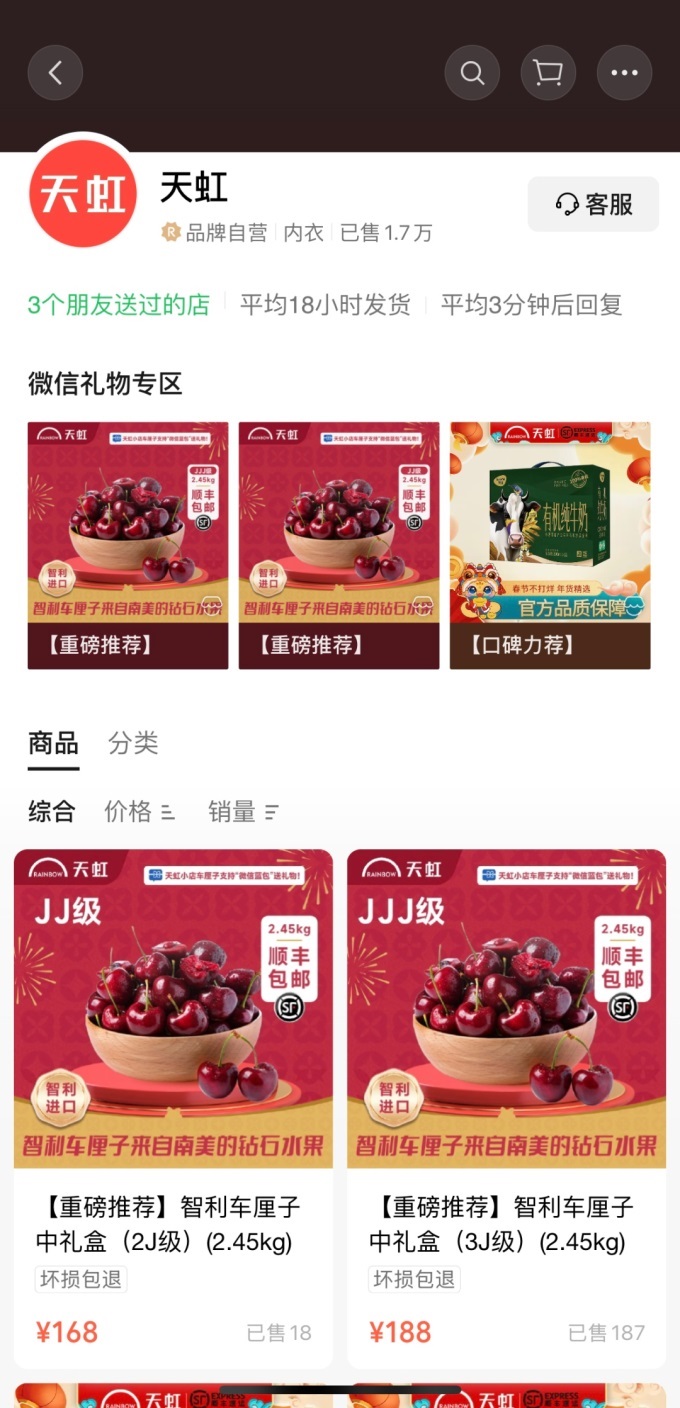 適逢春節(jié)前夕,微信小店“送禮物”功能成為市場熱議焦點,天虹敏銳把握趨勢,于2024年11月開啟了微信小店業(yè)務(wù),并以“品質(zhì)生活在天虹”為內(nèi)容打造方向,為顧客提供更豐富的生活解決方案。