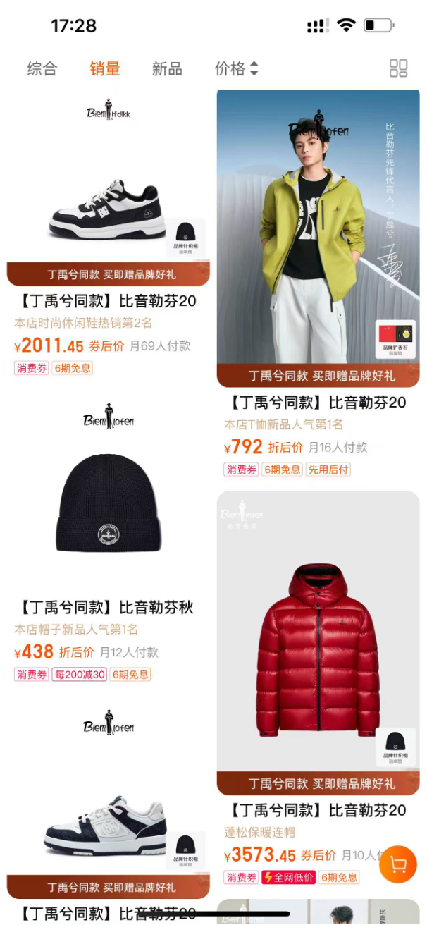 雖然選擇流量藝人當(dāng)代言人可以一定程度向年輕圈層靠攏,甚至年末品牌見面會聲稱因人流過大,不得不從商場遷移至體育場,但實際帶貨力卻很平平。官方旗艦店搜索代言人同款,銷量最高同款鞋,售價2000多元,月銷量才69人付款,其他大多數(shù)銷量僅為個位數(shù)。