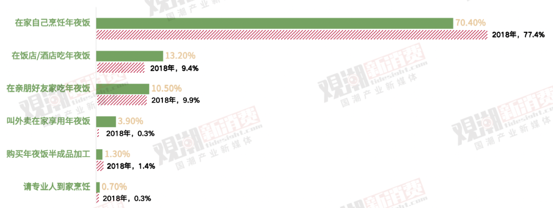 在家自己做年夜飯的比例減少了7%。