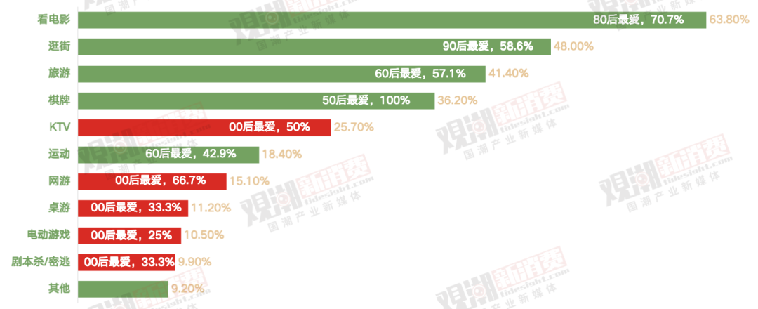 90后愛逛街,80后愛看電影,60后喜歡旅游和運(yùn)動(dòng),50后鐘愛棋牌。