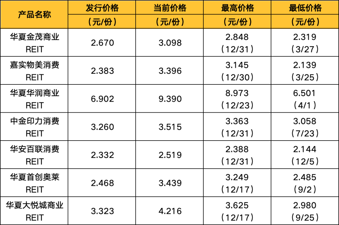 以時間線為順序,我們對7單已上市的消費基礎(chǔ)設(shè)施REITs,進行了信息總結(jié)和最新的數(shù)據(jù)整理。