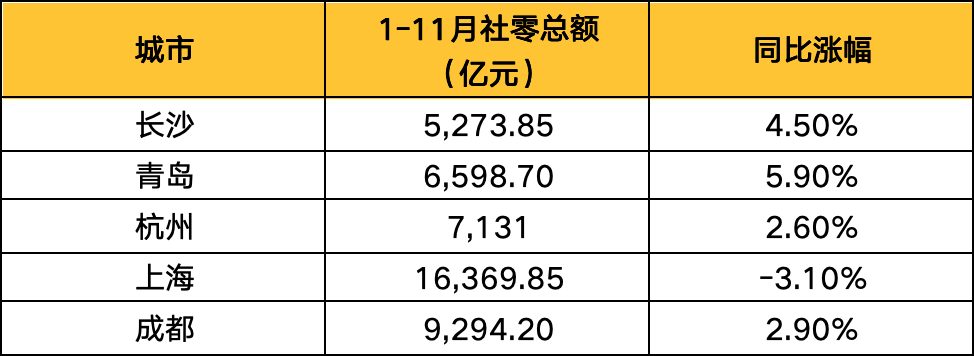五大城市去年的社零情況