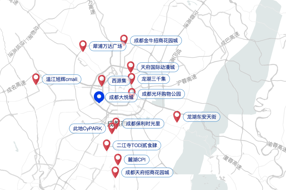 成都去年新開13個項目中,與成都大悅城最近的是體量5.7萬平米的西源集,目前該項目開業(yè)率約80%,距離項目7公里,對大悅城不構(gòu)成競爭挑戰(zhàn)。