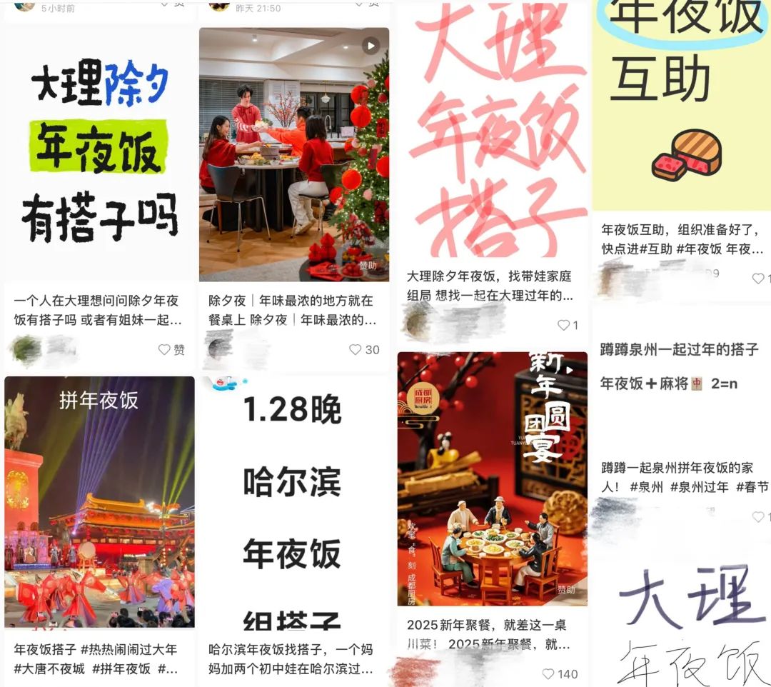 和林哥一樣,時(shí)間進(jìn)入1月中旬,坐標(biāo)上海的“橘媽”就在社交平臺(tái)發(fā)帖,打聽(tīng)“有沒(méi)有在找2-4人年夜飯的小伙伴”。