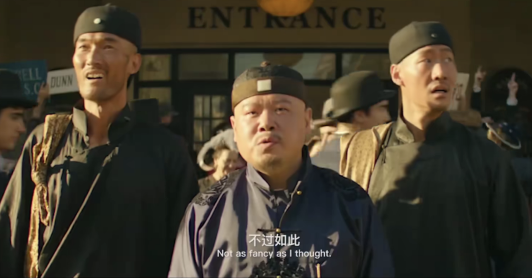 特別是作為全篇亮點的立意部分,喜劇角色突然義正言辭對著鏡頭講大道理的情節(jié),雖然合理但也削弱了拔高立意的效果,再加上“落后就要挨打”“華人團(tuán)結(jié)”一類的空洞說教,讓主題升華略顯生硬。