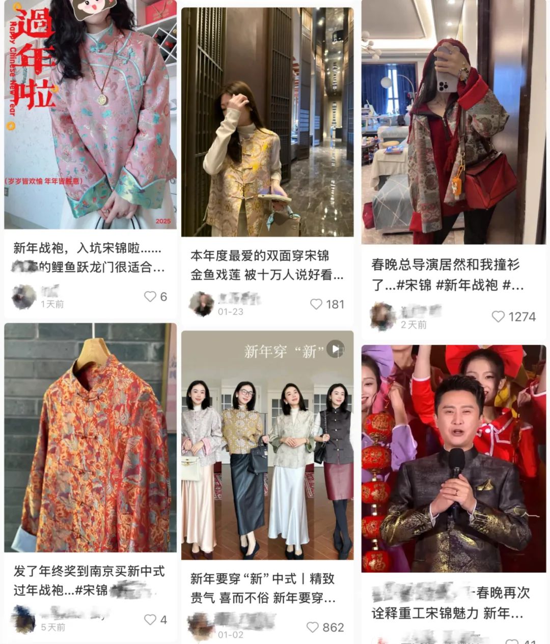 社交媒體上網(wǎng)友分享新年宋錦穿搭