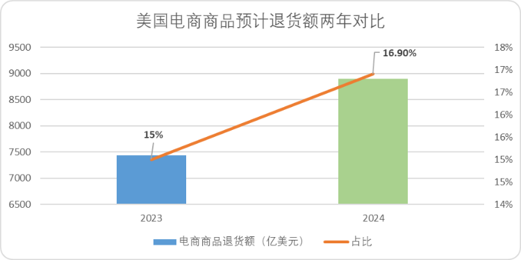 北美市場也不遑多讓,美國零售聯(lián)合會和退貨管理公司Happy Returns發(fā)布的報告顯示,預計2024年美國電商商品退貨額將達到所有商品零售銷售總額的16.9%,較一年前提升1.9%。