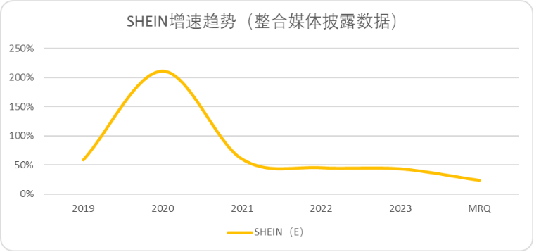 根據(jù)財聯(lián)社的報道,Shein在2024MRQ(上半年)的營收增速從40%快速下滑至23%,凈利潤下跌75%至不足4億美元。