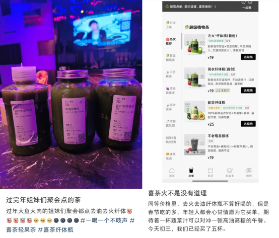 在產(chǎn)品表現(xiàn)上,喜茶于節(jié)前推出的「超級植物茶」系列新年新品去油纖體瓶上榜春節(jié)銷量榜單TOP10,以現(xiàn)制現(xiàn)榨的果蔬組合和清爽解膩的口感為春節(jié)餐桌帶來健康茶飲新選擇,因此成為不少消費者的春節(jié)消費熱門,攜同系列羽衣纖體瓶和去火纖體瓶共同上榜。
