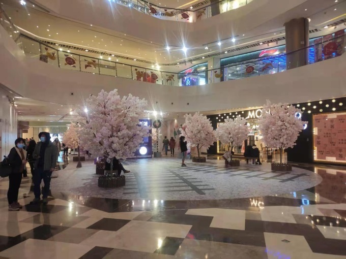 有一年的三月,正是早櫻開(kāi)放時(shí)節(jié)。櫻花的花期較短,就一個(gè)月左右。在上海的某個(gè)商場(chǎng)中庭,布置了一輛“賞櫻列車(chē)”(如下圖):