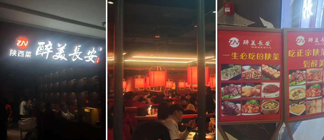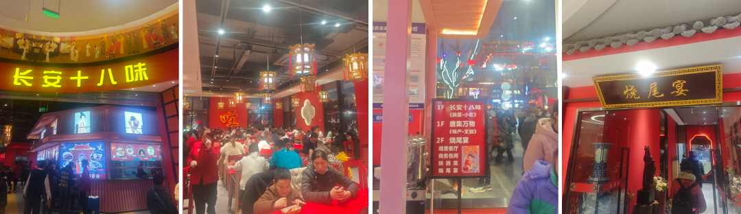 例如,位于鐘樓開(kāi)元商場(chǎng)七層的「醉美長(zhǎng)安」和商場(chǎng)一層的「長(zhǎng)安大排檔」表現(xiàn)尤為突出。彼時(shí),門(mén)店普通用餐區(qū)已經(jīng)座無(wú)虛席,店外依舊大排長(zhǎng)隊(duì),眾多食客等候用餐。