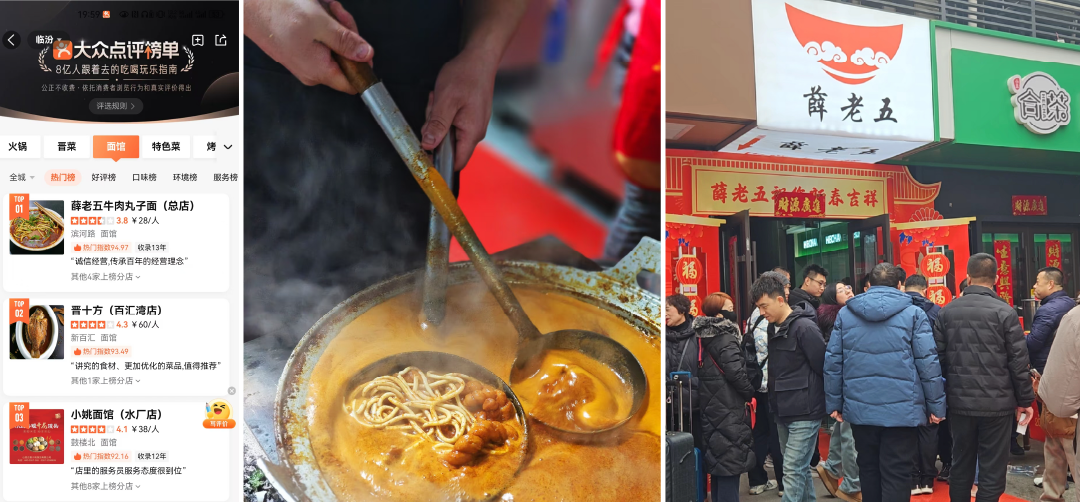 今年春節(jié)期間,當(dāng)?shù)仡H具名氣的代表品牌薛老五牛肉丸子面?zhèn)涫荜P(guān)注,吸引游客前去打卡。小紅書(shū)社交平臺(tái)上,關(guān)于“薛老五牛肉丸子面”的筆記超過(guò)10萬(wàn),大眾點(diǎn)評(píng)顯示,該品牌總店在當(dāng)?shù)厥敲骛^品類(lèi)中的熱門(mén)榜top1。人們?cè)u(píng)價(jià)褒貶不一,千人千味,終究無(wú)法滿(mǎn)足所有人的口味。