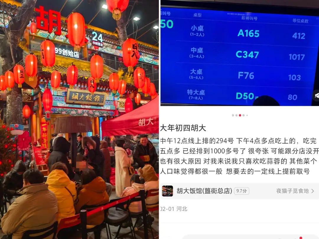 胡大作為北京典型的“地標(biāo)餐飲”,生意一如既往的“爆棚”。胡大相關(guān)負(fù)責(zé)人表示,今年春節(jié)期間只有總店?duì)I業(yè),其他分店放假休息。春節(jié)7天,胡大總店單店接待客流約有24000人次,收入同比增長(zhǎng)13%,客流增長(zhǎng)22%。其中,客流量集中在初三至初六,平均等位3小時(shí)以上。