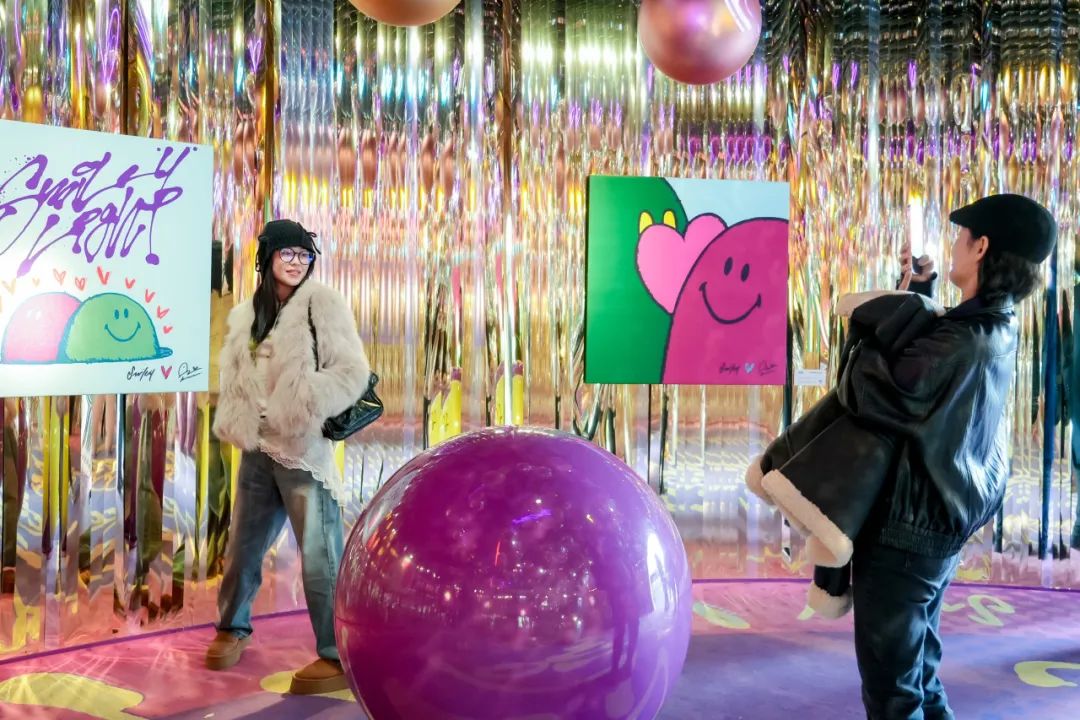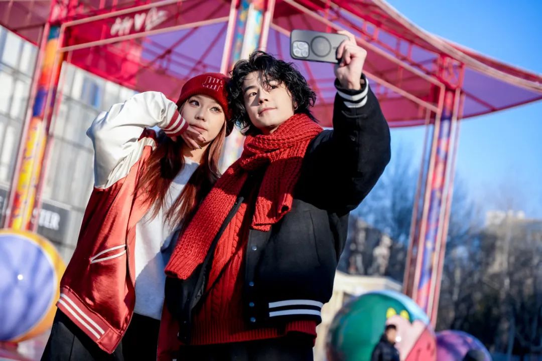 北區(qū)N15 廣場(chǎng)的“微笑藝?yán)取币矒Q上了一襲紅色“年服”,配以新春祝福燈牌,將節(jié)日的歡騰喜慶與蓬勃朝氣展現(xiàn)得淋漓盡致。