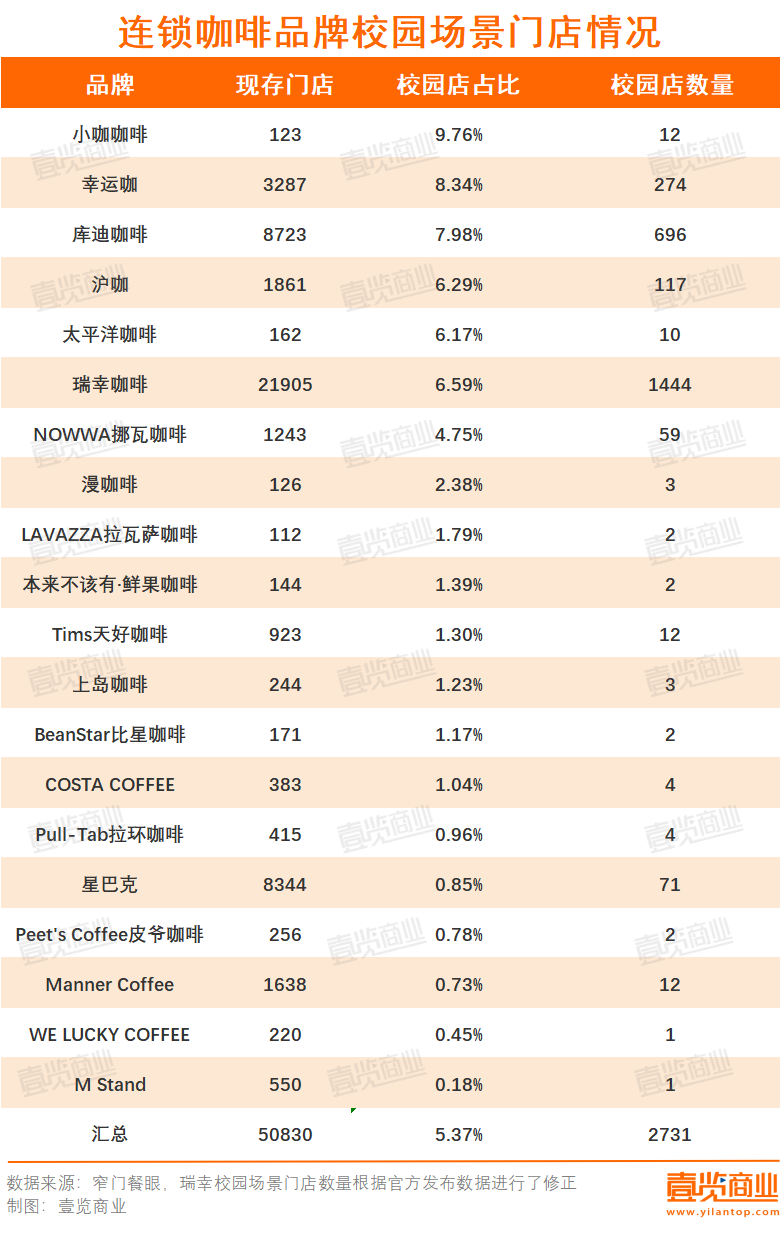 在這些細(xì)分點位中,高校成為一個“香餑餑”,幾乎所有品牌都想成為“大學(xué)生的第一杯咖啡”,瑞幸還在今年新增學(xué)校定點補(bǔ)貼,以此吸引加盟商。據(jù)壹覽商業(yè)不完全統(tǒng)計,截至2024年12月,至少有17個咖啡品牌在全國范圍內(nèi)開出超2000家校園店,占門店總數(shù)的5.37%。