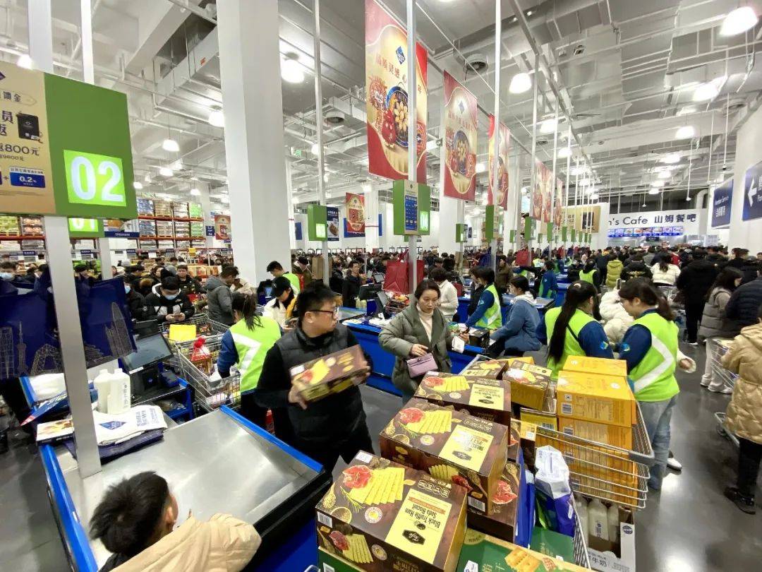 《天下網(wǎng)商》在春節(jié)期間走訪了這家位于紹興鏡湖區(qū)的山姆門店,與想象中的熱鬧場面一致,其中最受顧客追捧的是熟食區(qū)、冷鮮區(qū)、零食區(qū)等區(qū)域,標(biāo)志性的大尺寸購物車“堵車”嚴(yán)重。