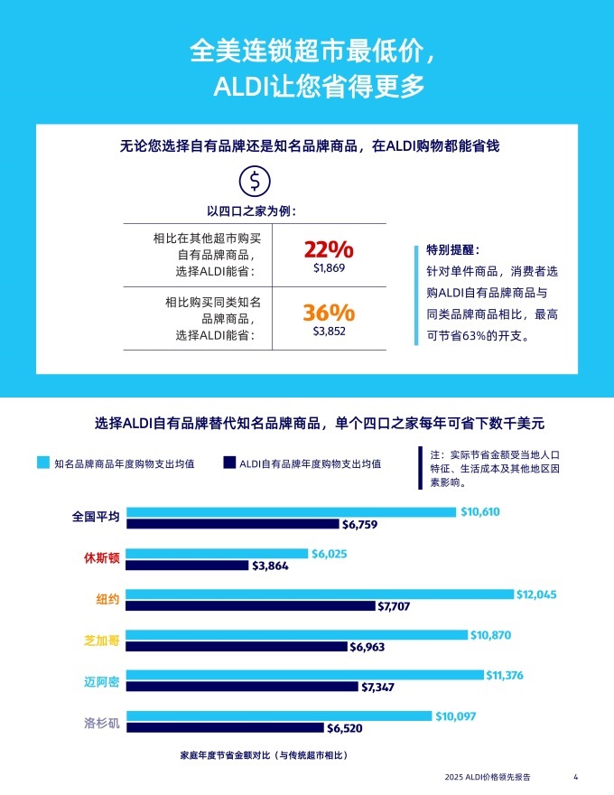 近日,美國增長最快的連鎖折扣超市ALDI首次發(fā)布“2025年價格領先報告”(完整版見文末)。