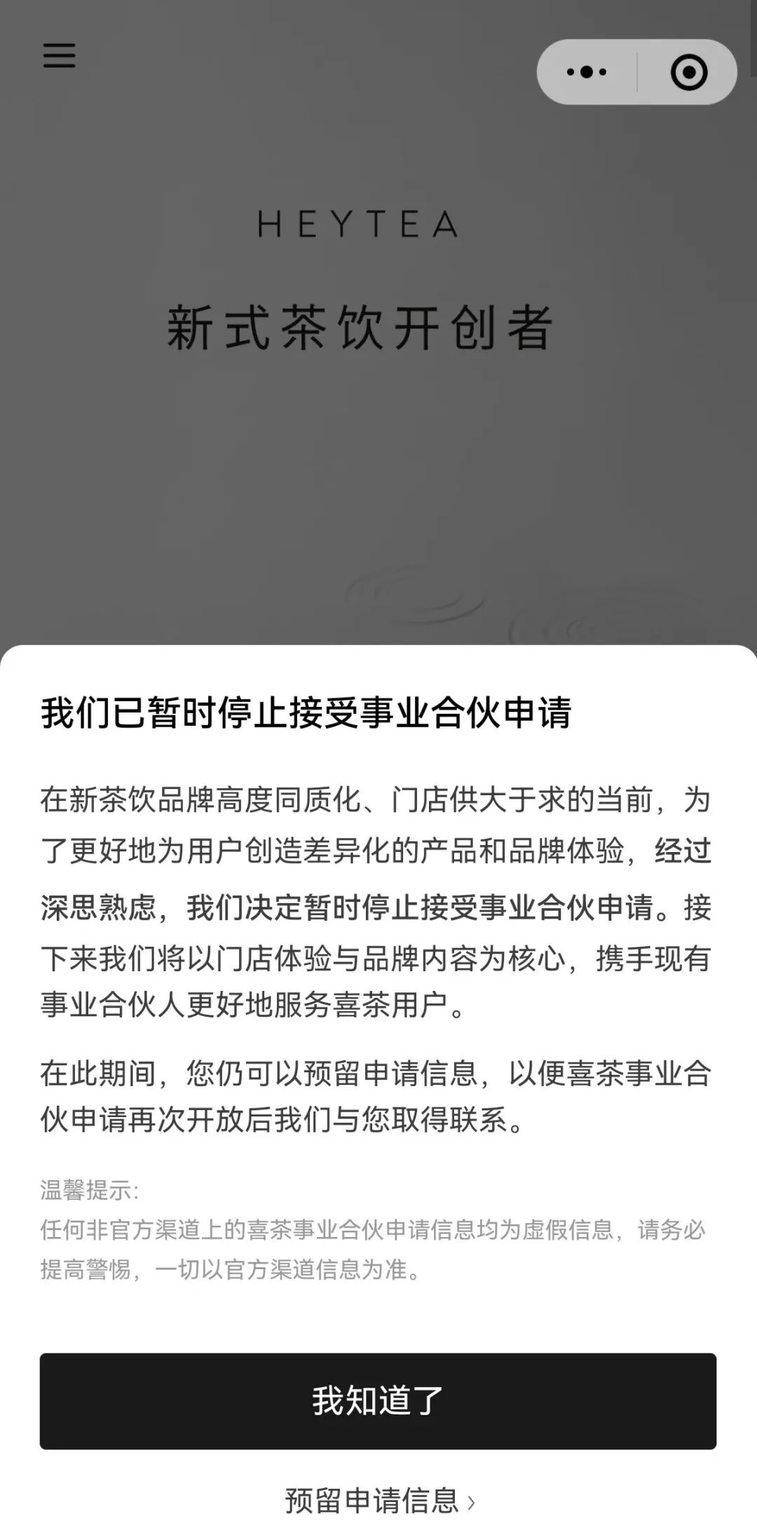 2月10日,喜茶通過公司內(nèi)部全員郵件形式,發(fā)布名為《不參與數(shù)字游戲與規(guī)模內(nèi)卷,回歸用戶與品牌》的戰(zhàn)略轉向,正式宣布暫停接受事業(yè)合伙申請。