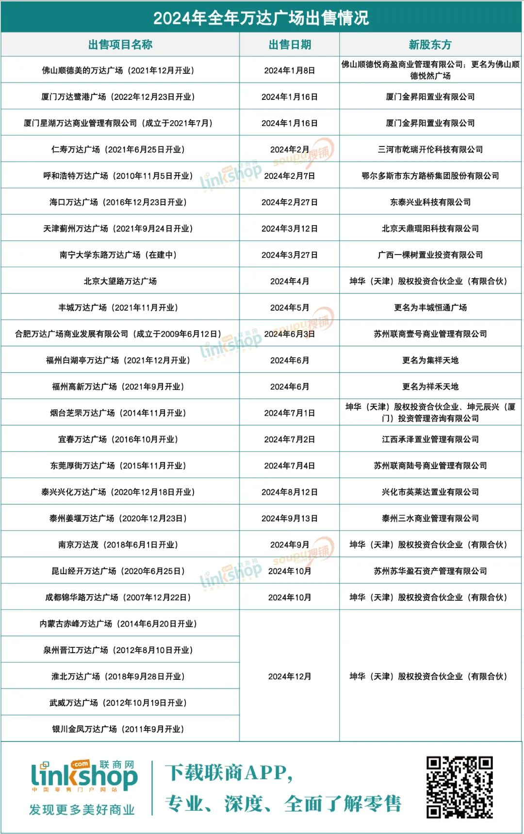 同時(shí),進(jìn)入2025年,泉州萬達(dá)廣場、銅陵萬達(dá)廣場、宣城萬達(dá)廣場、安陽萬達(dá)廣場、四平萬達(dá)廣場、揚(yáng)州邗江萬達(dá)廣場6個(gè)萬達(dá)廣場也已經(jīng)易主。