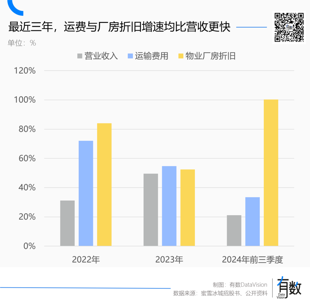 除了用于建廠的資本開支,蜜雪冰城另一項(xiàng)迅速增長的指標(biāo)是運(yùn)費(fèi)。