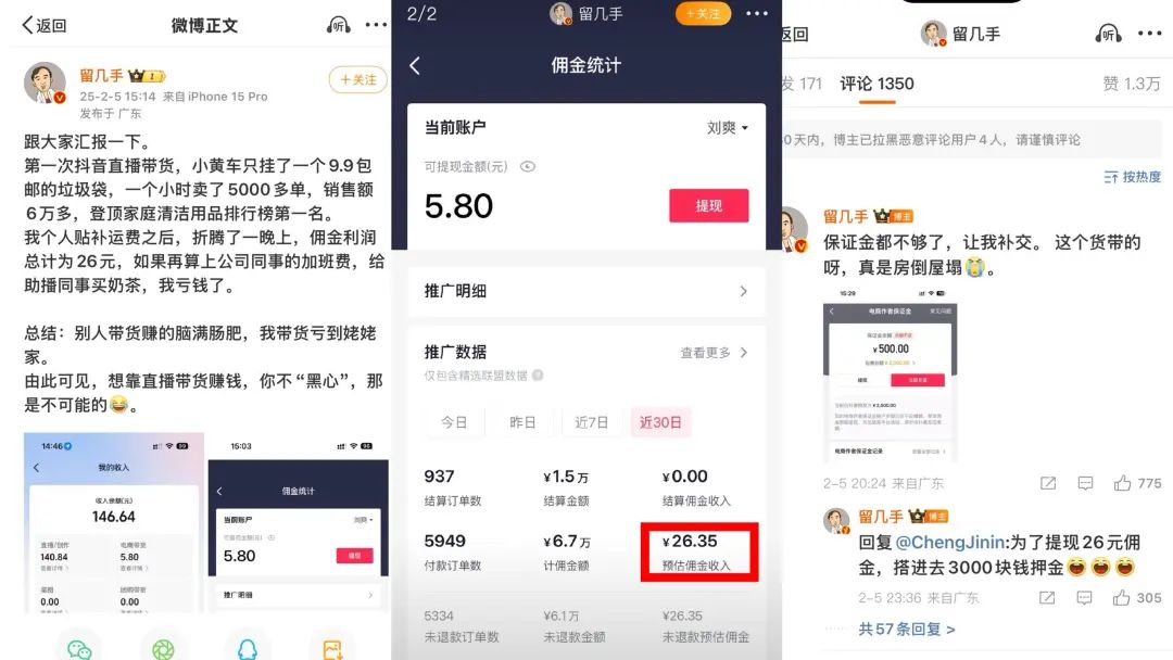 留幾手帶貨虧錢引發(fā)網(wǎng)友質(zhì)疑