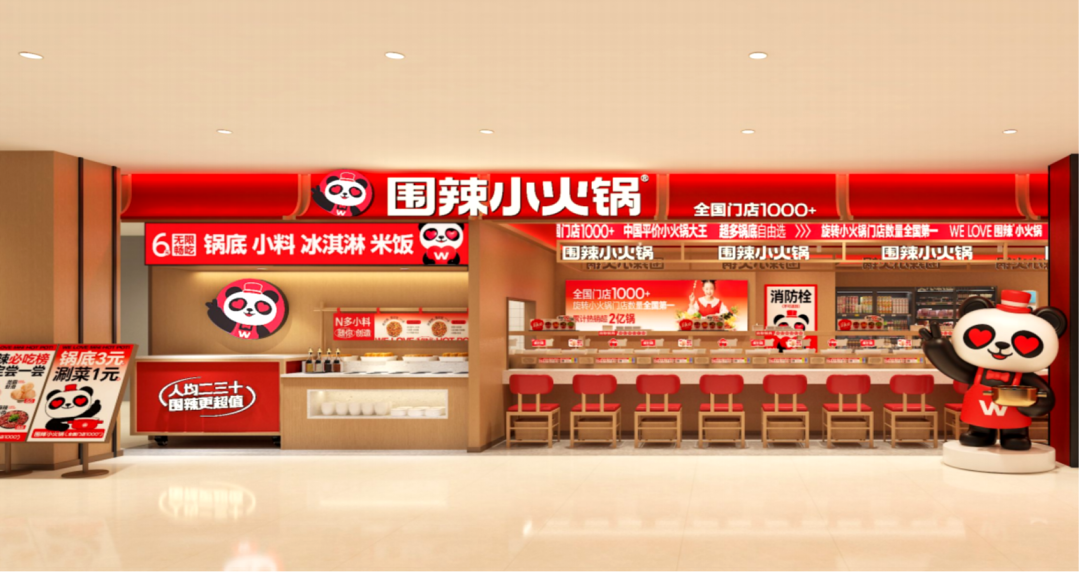 圍辣小火鍋則是帶起了小火鍋連鎖化的風(fēng)潮,2015年在河南創(chuàng)立,以高性價比為品牌特色,比如有18 款 2-3 元的鍋底可選擇,20 種免費小料,上百種 1-5 元的食材串。憑借獨特的經(jīng)營模式和產(chǎn)品優(yōu)勢,迅速擴(kuò)張,目前已晉級千店品牌,超過了曾經(jīng)輝煌無比的小火鍋巨頭 “呷哺呷哺”,成為下沉市場的“黑馬”。