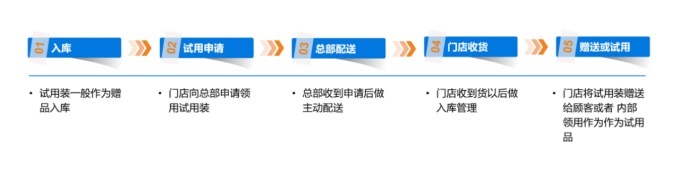 在高端化妝品自營的數(shù)字化管理中,試用裝小樣以獨立的SKU進行管理,在小樣的驗收入庫、試用申請、總部配送、門店收貨、前臺贈送等業(yè)務環(huán)節(jié)上,通過單據(jù)驅動,讓企業(yè)能夠詳細地了解到小樣到了多少個、不同的門店領取了多少、領用的小樣都贈送給了誰。同時也可以由門店倉庫管理驗收入庫,由品牌專柜完成試用申請后進行贈送或試用。在各業(yè)務環(huán)節(jié)結合數(shù)字化的工具做閉環(huán)管理,從源頭上解決試用裝浪費、庫存精準度低的問題,同時還能有效的避免由于人為因素導致相關成本的增加。
