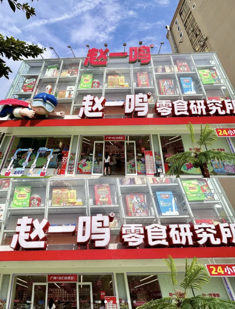 這一策略雖然對(duì)標(biāo)山姆、奧樂齊等國(guó)際硬折扣品牌,但定位上更聚焦大眾市場(chǎng),而非中產(chǎn)階層。山姆、奧樂齊等品牌主要面向中高端消費(fèi)群體,提供高質(zhì)價(jià)比的商品。而鳴鳴很忙則以大眾消費(fèi)者為目標(biāo),主打高性價(jià)比。例如,品牌旗下的 “趙一鳴零食研究所”“零食很辣” 等主題店,通過獨(dú)特的場(chǎng)景化陳列,營(yíng)造出與傳統(tǒng)超市不同的購(gòu)物氛圍。在 “趙一鳴零食研究所”,店內(nèi)裝修風(fēng)格充滿科技感和探索感,將各類零食按照不同的口味、產(chǎn)地、品牌等進(jìn)行分類陳列,搭配有趣的介紹標(biāo)簽,讓消費(fèi)者在購(gòu)物過程中仿佛置身于一個(gè)零食探索的世界。同時(shí),通過高性價(jià)比產(chǎn)品組合,如推出零食大禮包、家庭裝日用品等,滿足消費(fèi)者的不同需求,有效提升了消費(fèi)者體驗(yàn)。