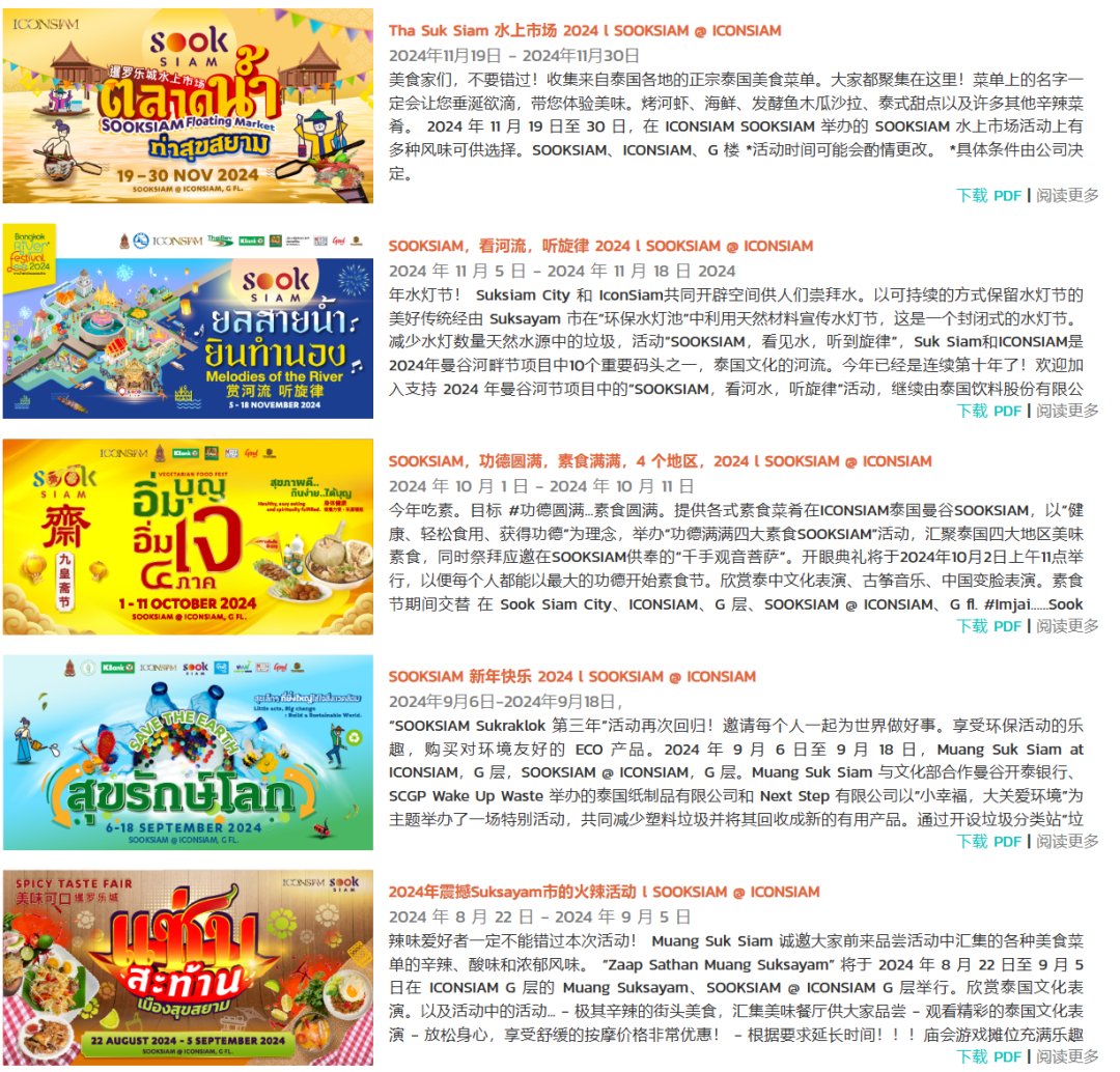 從暹羅樂(lè)城SOOKSIAM的官網(wǎng)來(lái)看,暹羅樂(lè)城SOOKSIAM舉辦的文化活動(dòng)和節(jié)日慶典非常密集。